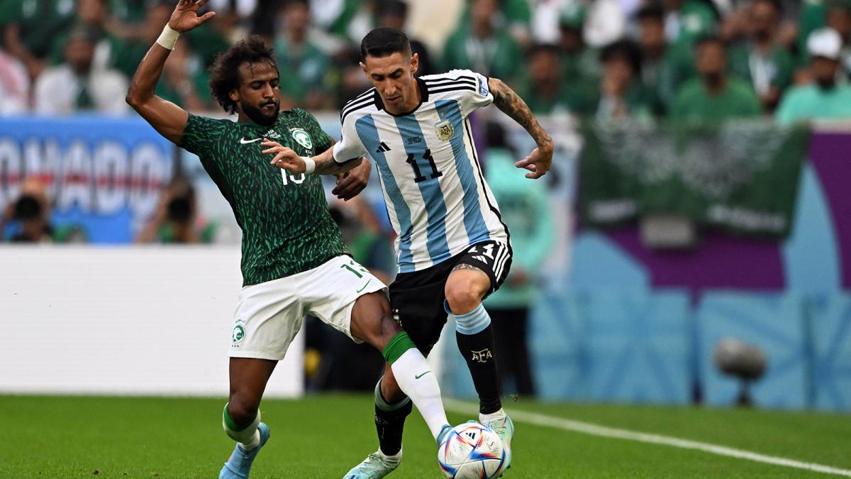 El primer acierto del equipo asiático, protagonista de la mayor hazaña para el fútbol árabe, fue la presión sofocante sobre los mediocampistas argentinos, lo que incomodó tanto a Leandro Paredes como Rodrigo De Paul para el pase corto. Solo "Papu" Gómez pudo filtrar alguna habilitación, pero, por lo demás, el recurso argentino fue el envío largo para que Di María, Lautaro o Messi se fugaran de la última línea rival, por momentos armada con seis futbolistas. Al momento de replegarse, Arabia Saudita jugó en cuatro franjas del césped y eso fue un problema sin solución para una Argentina bloqueada, impotente y sin rebeldía.