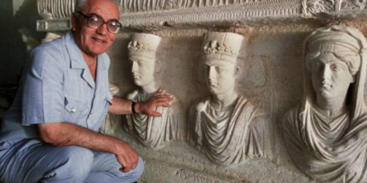 Miembros del grupo Estado Islámico colgaron el cuerpo de Khaled al-Assaad de una columna romana que ...