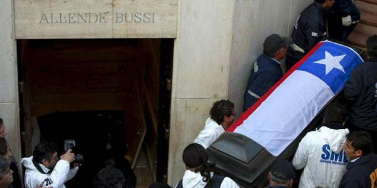 Los restos del ex presidente Salvador Allende fueron exhumados ayer en una operación judicial para ...