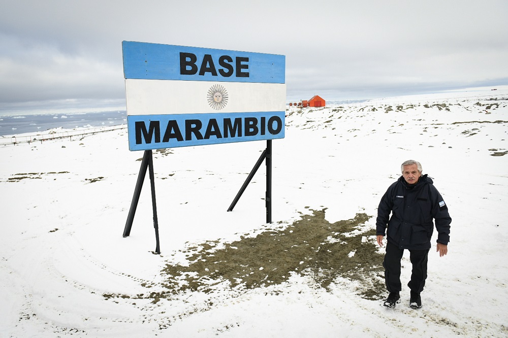 El presidente Alberto Fernández realizó este miércoles un viaje histórico a la Base Marambio de la Antártida, a la que consideró "un enclave vital de la soberanía territorial y política" de la Argentina y donde reafirmó el compromiso de su Gobierno en la "conservación del ecosistema antártico" y en la defensa de los recursos estratégicos de ese continente. "El crecimiento de nuestra Argentina tiene proyección hacia el Sur y visión bicontinental, y parte del desarrollo nacional depende de la defensa de sus componentes estratégicos", expresó el Presidente durante un discurso que pronunció en la base científica permanente Marambio y que fue difundido por cadena nacional.