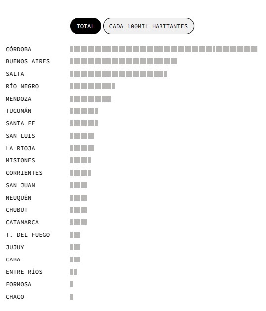 Casos por provincia cada 100 mil habitantes. Fuente: Los malos usos (ELA, Cedes, Redaas, El Gato y la Caja)