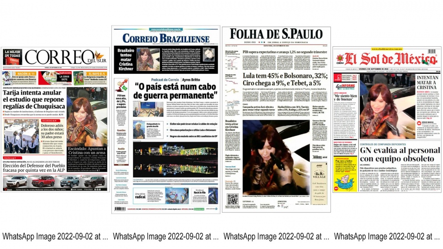 Medios de España, Italia, Reino Unido, Estados Unidos y Brasil, ente otros, reflejaron el intento de magnicidio contra la Vicepresidenta.