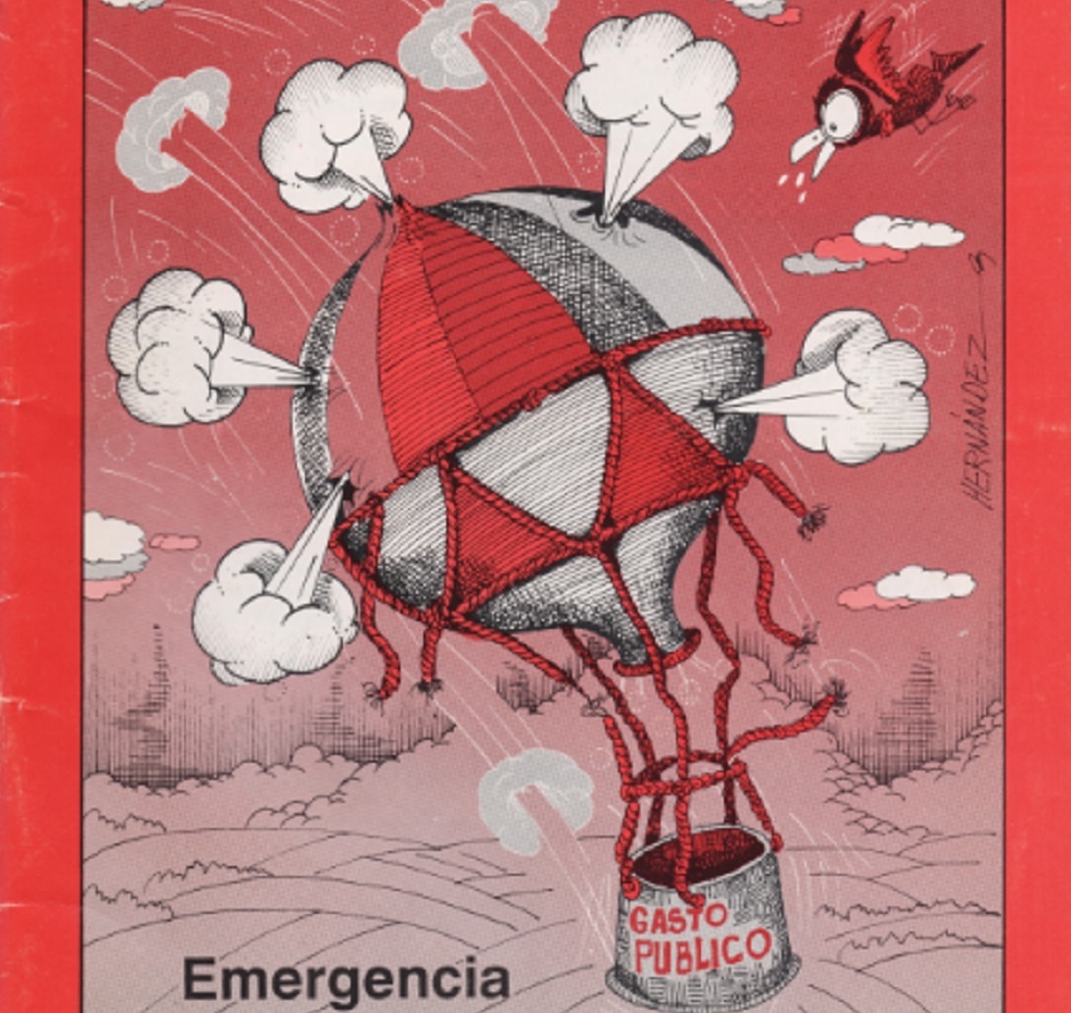 Portada de la Revista Novedades Económicas de 1989 que ilustra la expansión excesiva del gasto público en el marco de un proceso hiperinflacionario. Gentileza Incihusa.