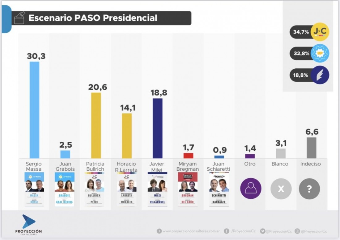 Proyección Consultores realizó un revelamiento sobre la intención de voto para las elecciones presidenciales 2023 en el país. El oficialismo se impondría en las Primarias Abiertas, Simultáneas y Obligatorias. Dialogamos con Santiago Giorgetta, uno de los directores de la consultora.