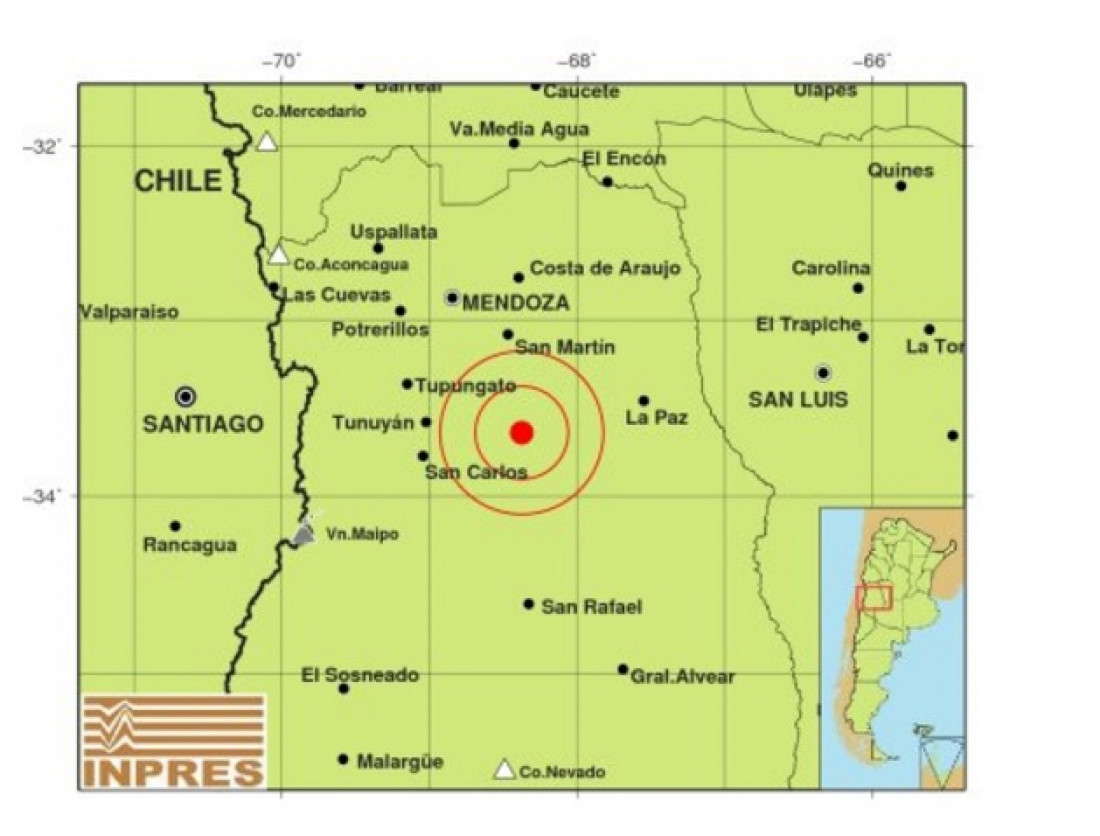 El Instituto Nacional de Prevención Sísmica (Inpres) confirmó que a las 8.20 de este martes 17 se produjo un temblor de una magnitud de 4,5 en la escala de Mercali, con epicentro en la zona Este de Mendoza. De acuerdo con la información que publicó el Inpres en su sitio web, el epicentro del sismo se ubicó a 96 kilómetros al Este de la ciudad de Mendoza, específicamente en Tunuyán.