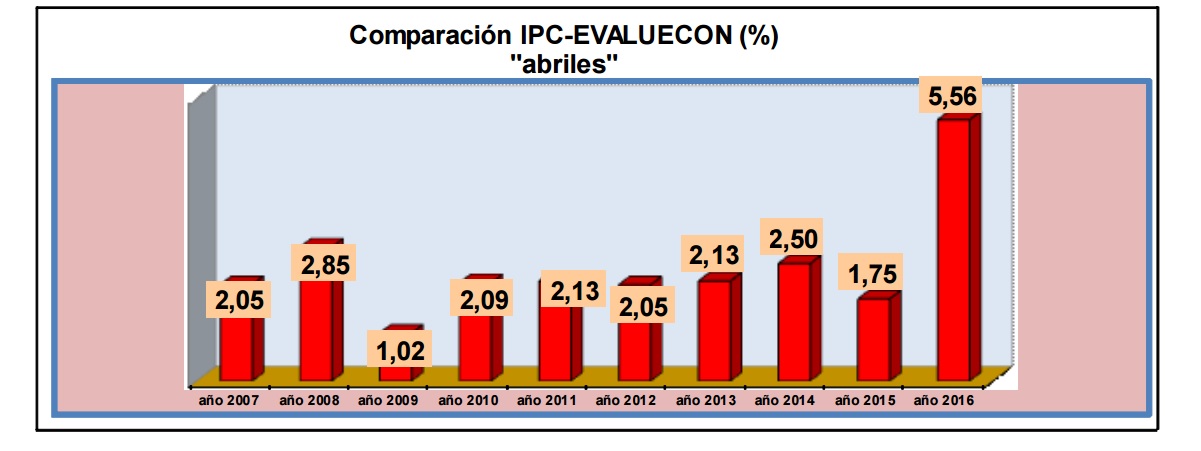 El gráfico muestra el crecimiento del IPC desde el año 2007. Abril registra el mayor aumento en estos años. Foto: Evaluecom.