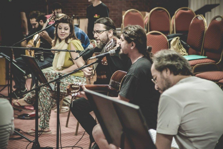Ricardo Mollo y músicos locales ensayan para La Fiesta de la Cosecha