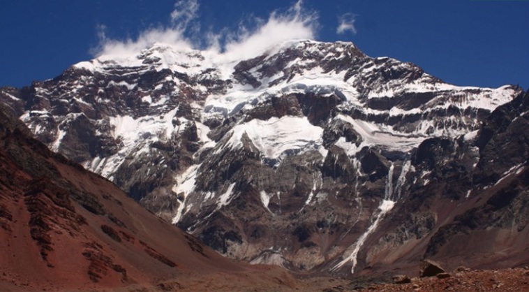 Vista de los glaciares colgantes de la pared del Aconcagua. Foto: M Castro