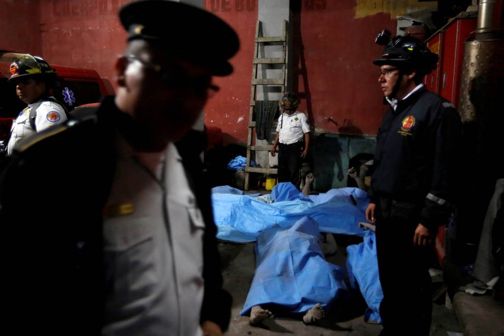Un bombero cubre cuerpos tendidos en una morgue temporal cerca del Volcán de Fuego en Alotenango. Foto: gentileza Reuters.