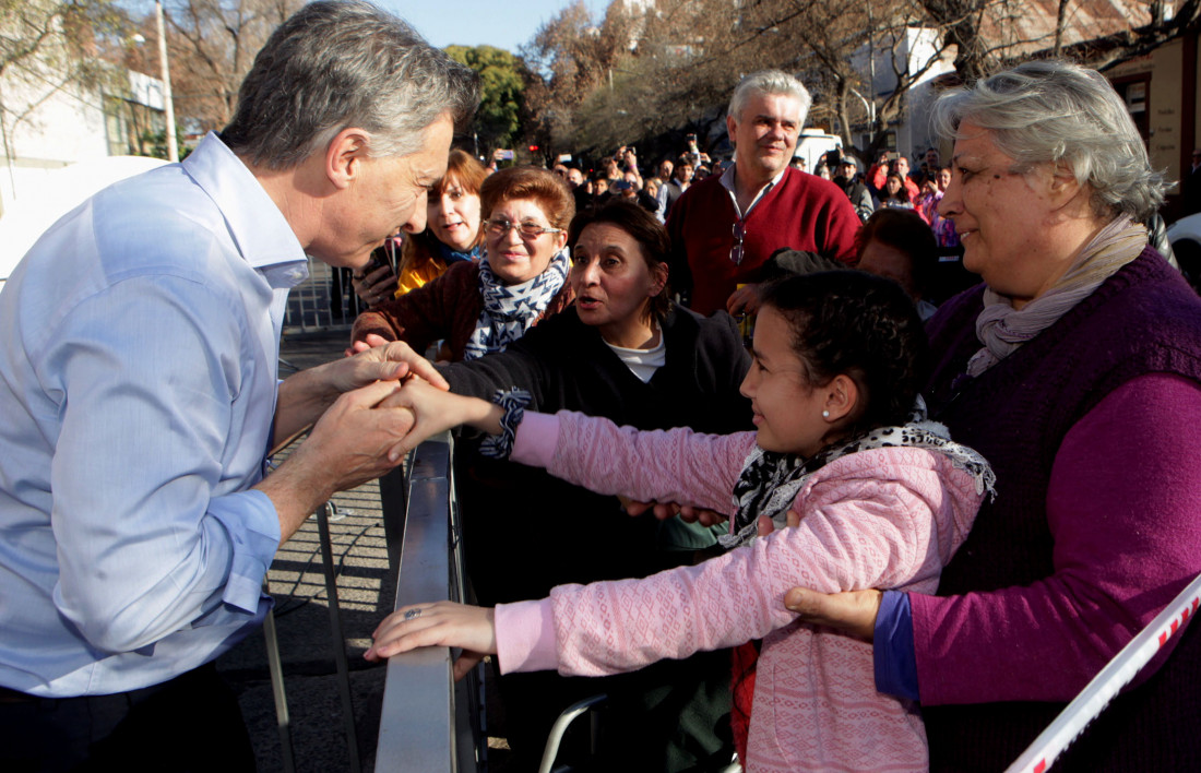 Macri saludando a mendocinos en la puerta de la Federación de Boxeo
