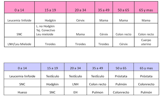 Además desde el registro catalogaron las locaciones del cáncer dependiendo las edades