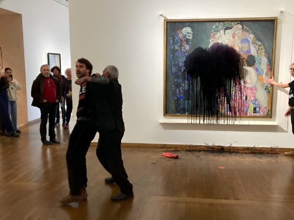 Solo en noviembre, en vísperas de la conferencia sobre el cambio climático COP27 que se hizo en Egipto, militantes de Extinction rebellion pegaron sus manos al marco de "La Maja desnuda" y "La Maja vestida" de Goya en el Museo del Prado de Madrid, intentando generar conciencia sobre los riesgos nefastos del calentamiento global; activistas de Última generación tiraron líquido negro sobre el cuadro "Muerte y vida" de Klimt en el Museo Leopold de Viena: "Los nuevos pozos de petróleo y gas son una sentencia de muerte para la humanidad", postearon en Twitter; y en Milán cubrieron de harina un auto pintado por Warhol al grito de "'¡No habrá más comida ni agua, hay un colapso ecológico!".