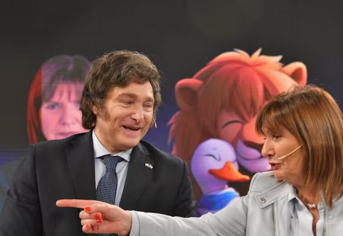 Javier Milei y Patricia Bullrich en programa de televisión. Foto: Enrique García Medina para La Nación