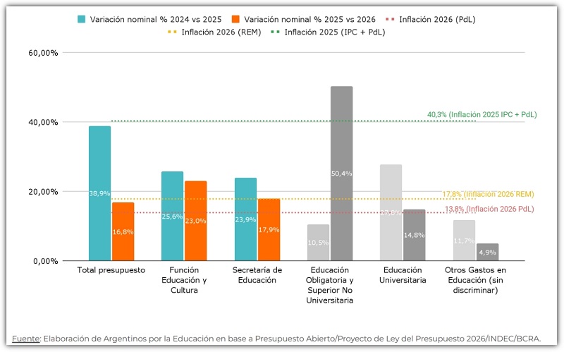 Además, el Plan Nacional de Alfabetización (creado en junio de 2025) recibirá en 2026 unos $ 580 mil millones. Esto implica un incremento real del 39,3% con respecto a los $ 352 mil millones presupuestados en 2025.
