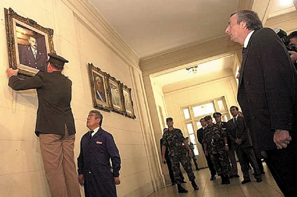 "Proceda", le dijo Néstor Kirchner a Roberto Bendini, jefe del Ejército, el 24 de marzo de 2004, y así ordenó que fueran retirados los cuadros de los dictadores Jorge Rafael Videla y Reynaldo Bignone de la galería de directores del Colegio Militar de El Palomar.